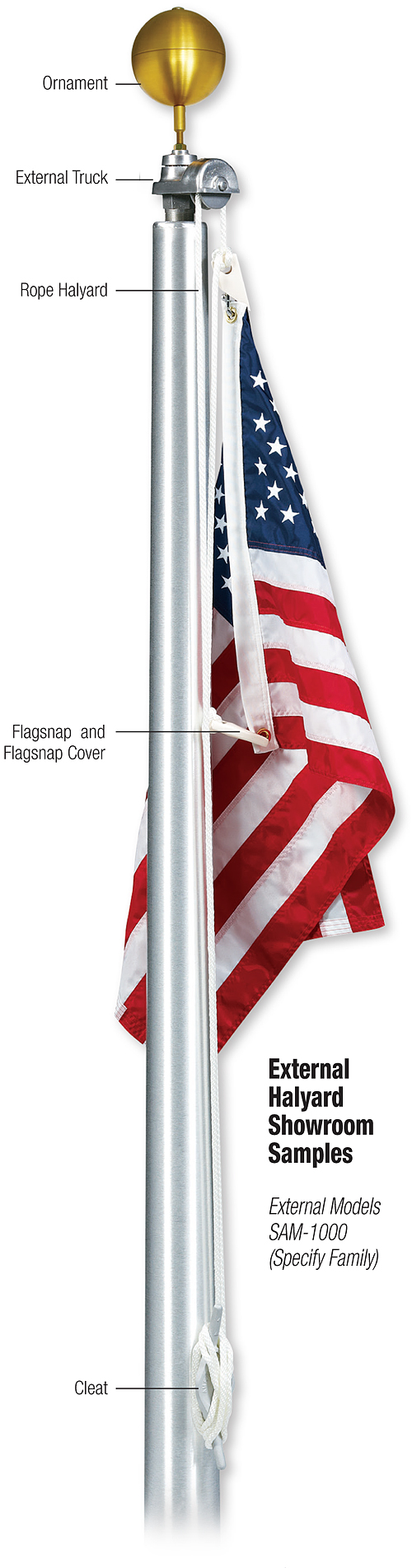 - External Halyard Systems: These systems feature a rope running along the outside of the flagpole. They are easy to use and budget-friendly but more susceptible to tampering and wear due to their exposure.