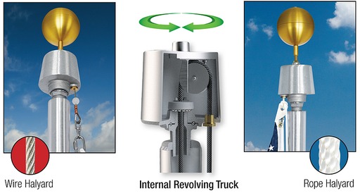 - Consider flagpoles with internal revolving trucks, which allow flags to rotate with the wind. This feature prevents tangling and keeps your display looking sharp. Check out Concord American Flagpole for more information and to better understand all the options.
